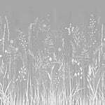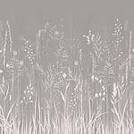 Fotobehang Grijze achtergrond met gras en bloemen