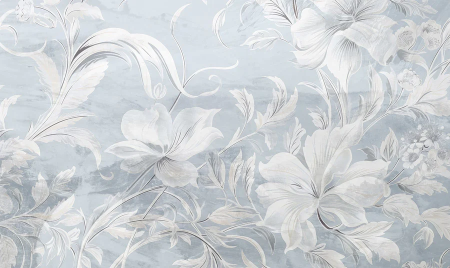 Fotobehang Wit en grijs bloemenpatroon