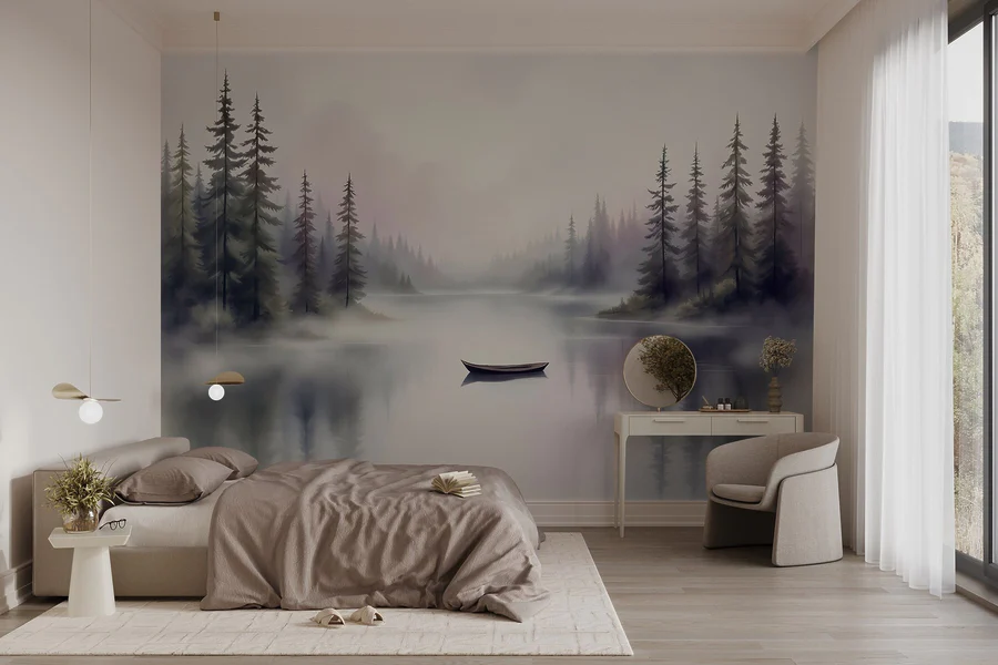 15.51 €9.30 €Fotobehang Schilderij van een bos met mist
