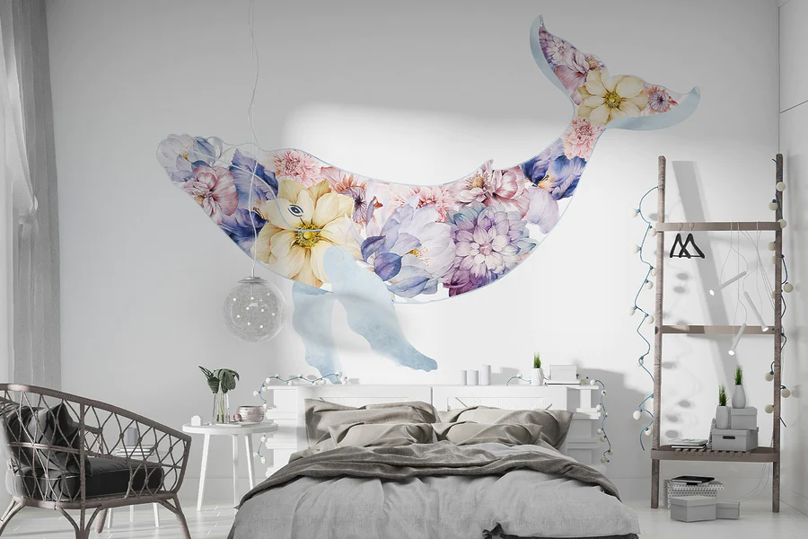 Fotobehang Walvis met bloemen erop