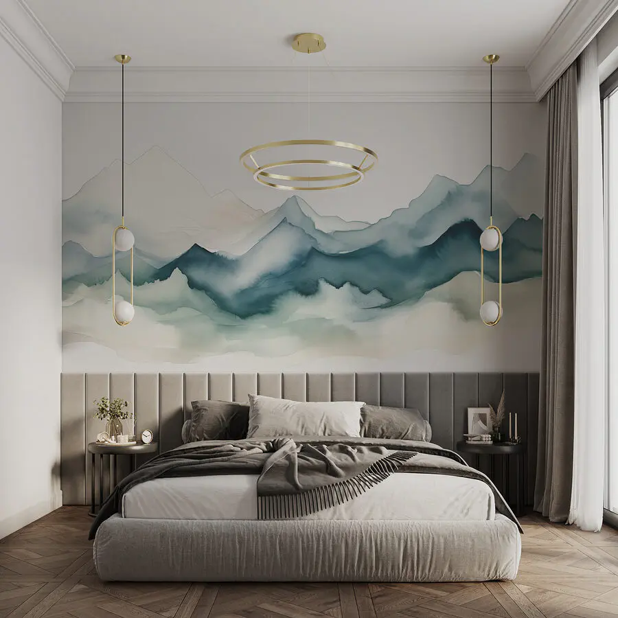 16.08 €8.85 €Fotobehang Een aquarel van bergen en mist