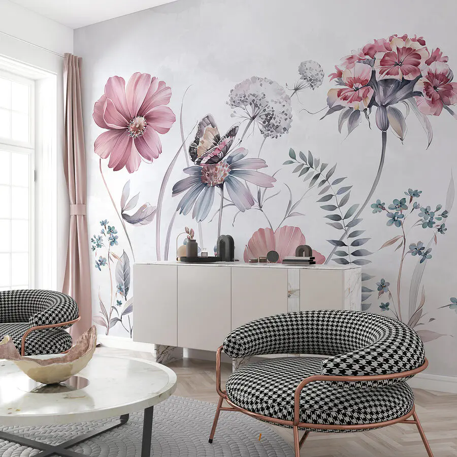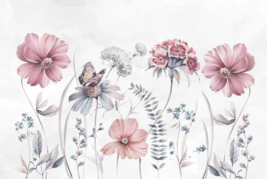 16.08 €8.85 €Fotobehang Schilderij van bloemen en vlinders