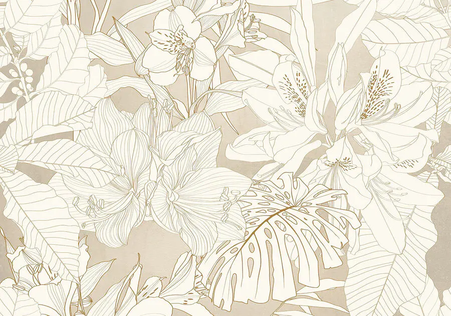 Fotobehang Behang met bloemen en bladeren