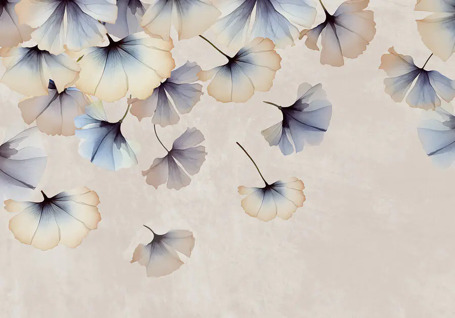 16.31 €9.79 €Fotobehang Dansende bloesems tegen een blauwe achtergrond