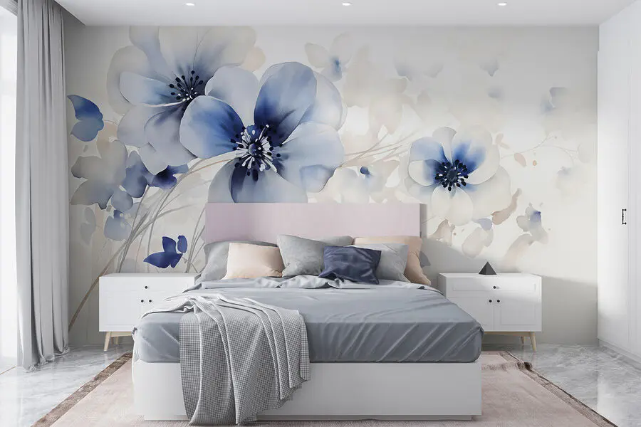 16.31 €9.79 €Fotobehang Schilderij van blauwe bloemen