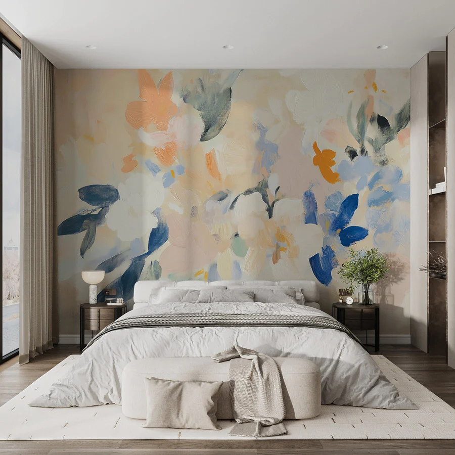 Fotobehang Schilderij van bloemen op een wit oppervlak