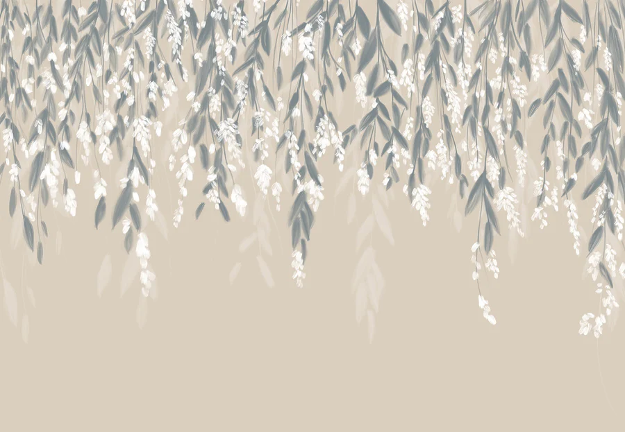 15.51 €9.30 €Fotobehang Witte bladeren op een grijze achtergrond
