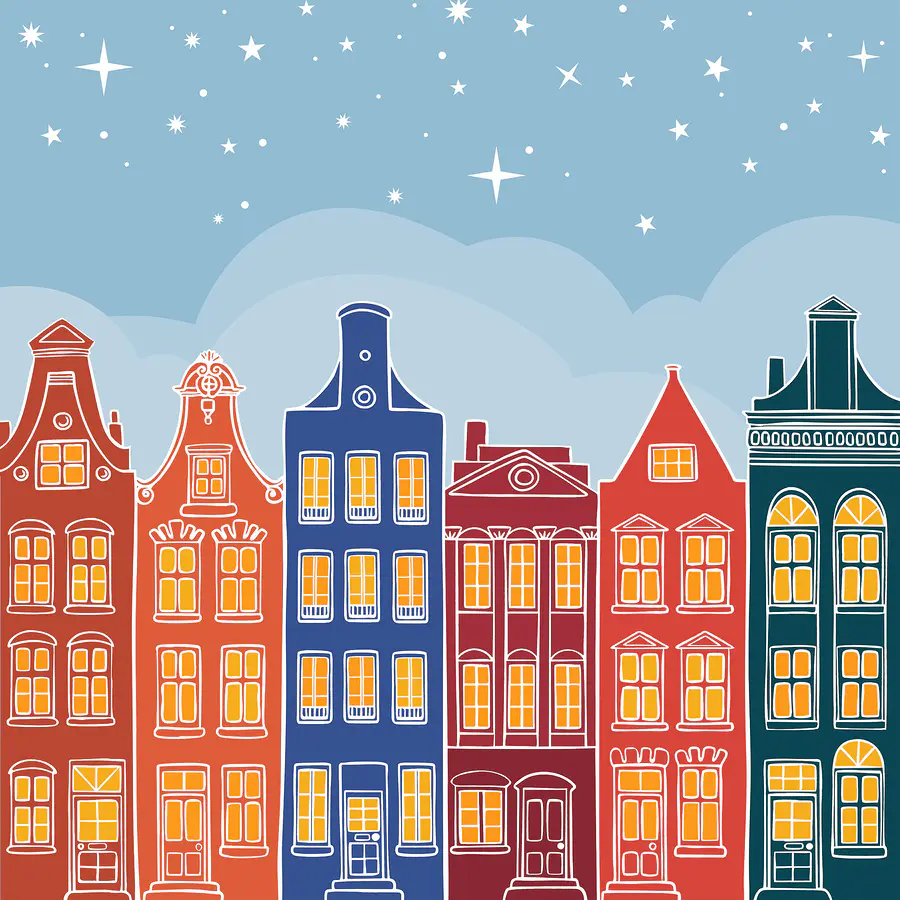 15.51 €9.30 €Fotobehang Tekening van een stad met hoge gebouwen