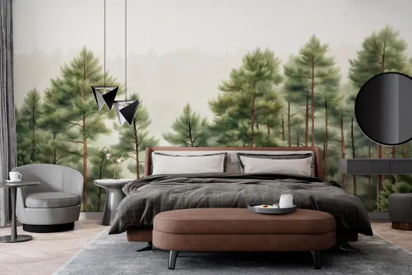 16.31 €9.79 €Fotobehang Groep bomen in een mistig gebied