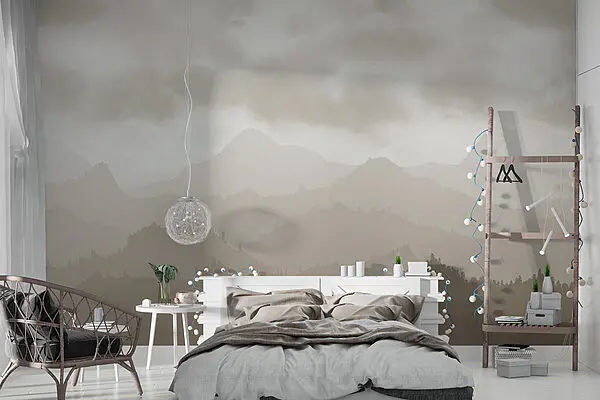 16.31 €9.79 €Fotobehang Mistig landschap met bomen en bergen