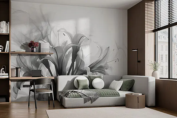 16.31 €9.79 €Fotobehang Zwart-wit afbeelding van bloemen