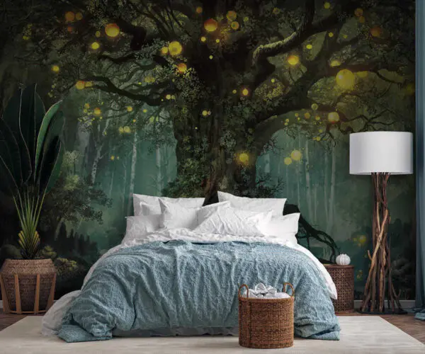 Fotobehang Fotobehang Schilderij van een boom met lichtjes erop (Artikelnummer: u79589)