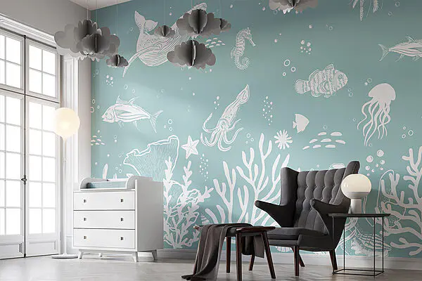 16.31 €9.79 €Fotobehang Een witte omtrek van zeedieren