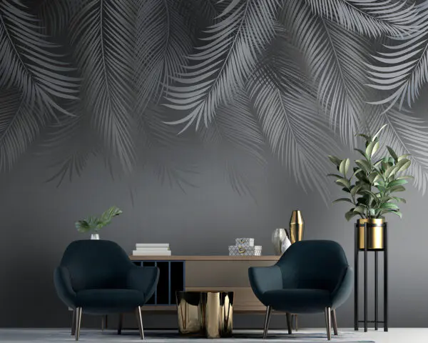 16.31 €9.79 €Fotobehang Grijze en witte achtergrond met bladeren