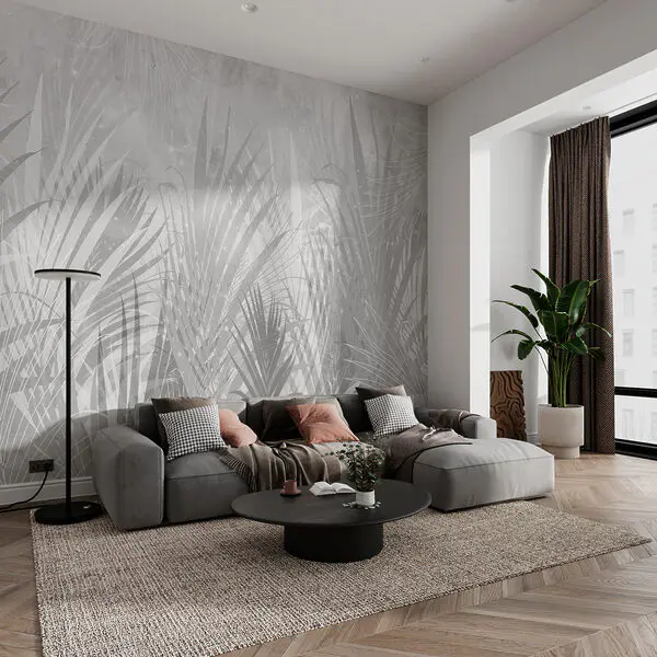 16.31 €9.79 €Fotobehang Een grijze en witte achtergrond met planten