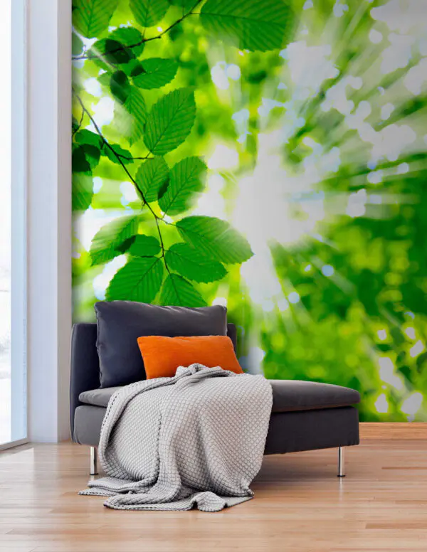 16.31 €9.79 €Fotobehang Zon schijnt door bladeren