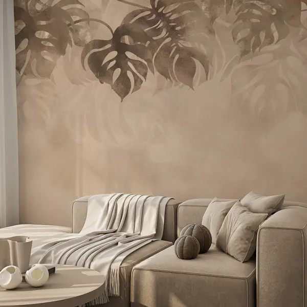 16.31 €9.79 €Fotobehang Elegant gebladerte tegen een gestructureerde achtergrond