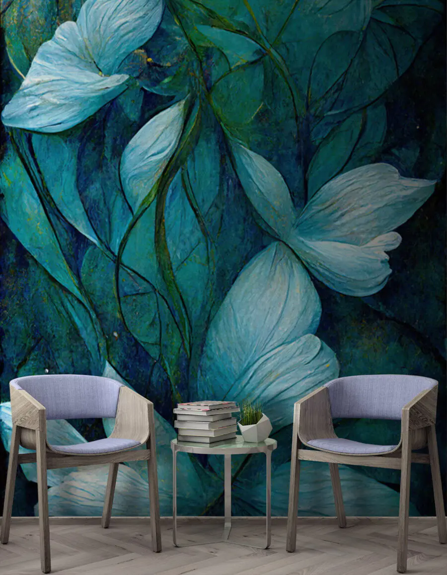 Fotobehang Schilderij van bloemen en bladeren