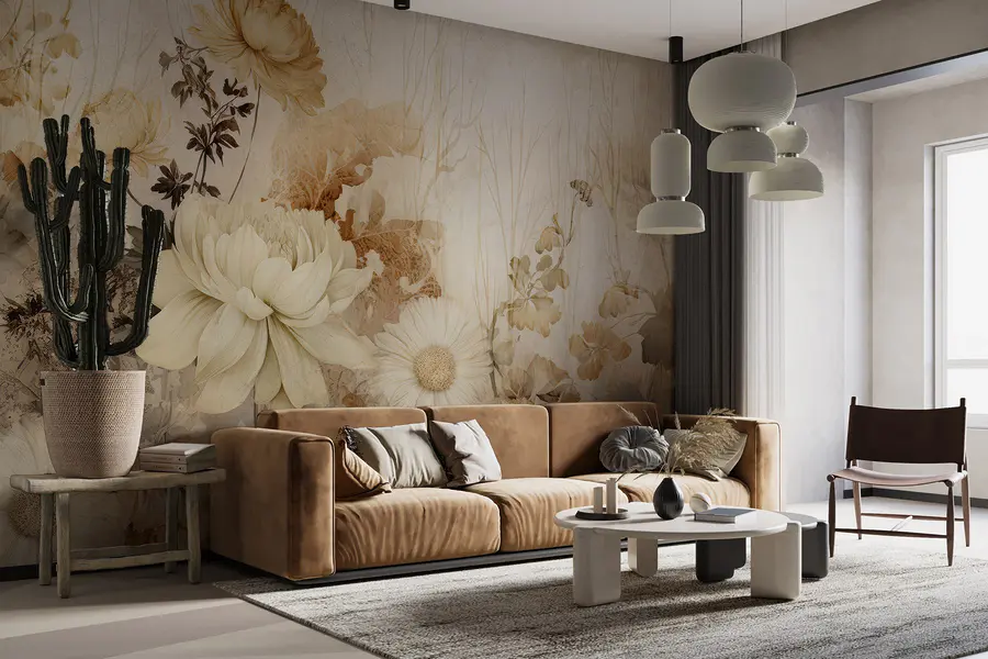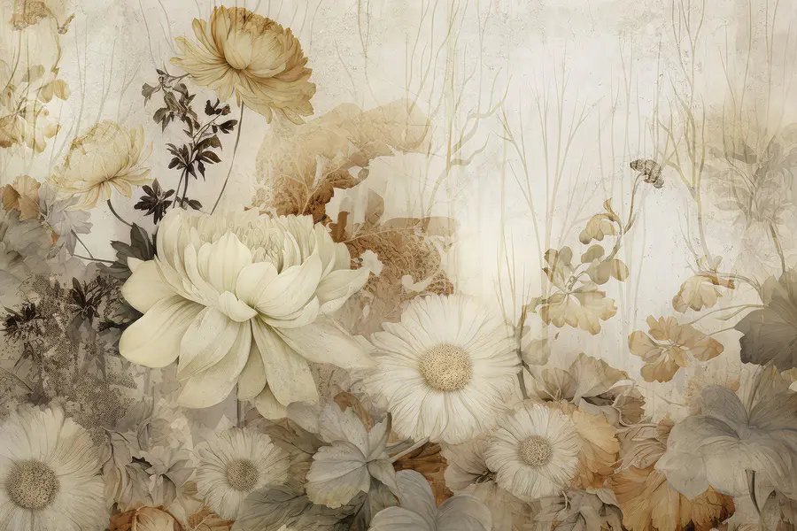16.08 €8.85 €Fotobehang Delicate bloemen in gedempte tinten