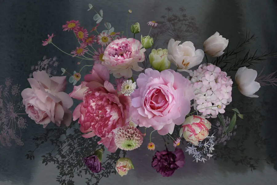 15.51 €9.30 €Fotobehang Elegant bloemstuk op donkere achtergrond