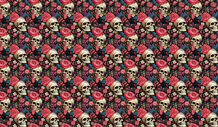Fotobehang Patroon van schedels en bloemen