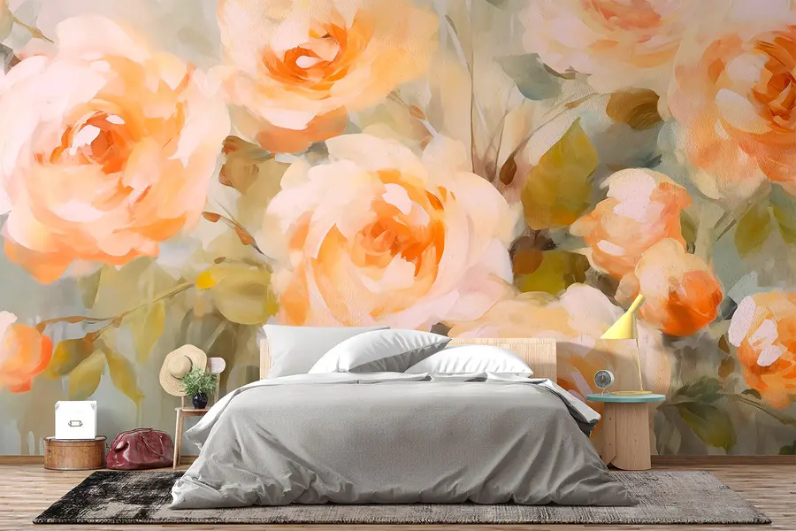 Fotobehang Schilderij van bloemen op een wit oppervlak