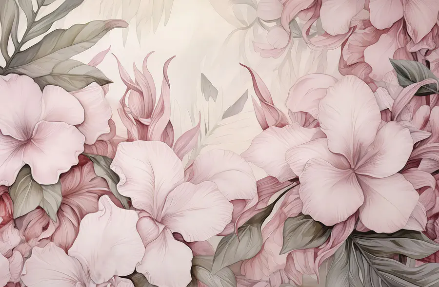 Fotobehang Delicate bloemen in zachte pasteltinten