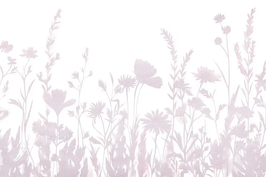 Fotobehang Zachte silhouetten van delicate wilde bloemen