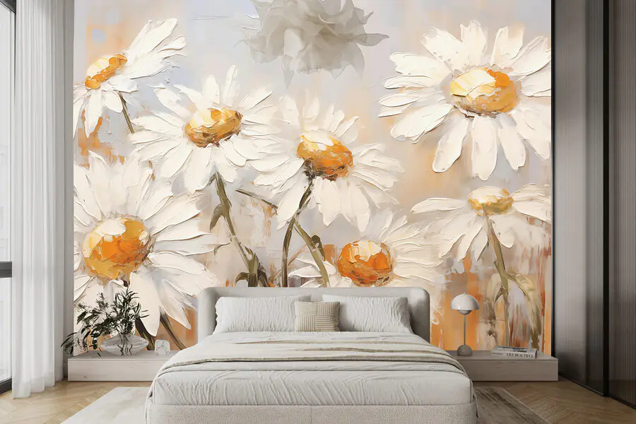 Fotobehang Schilderij van witte bloemen