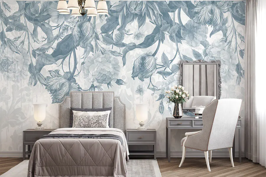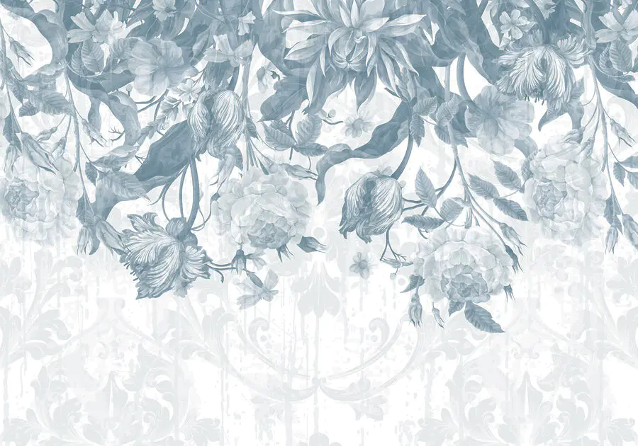 Fotobehang Delicaat bloemenpatroon in koele tinten