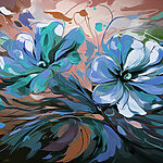 Fotobehang Schilderij van bloemen op een blauwe achtergrond
