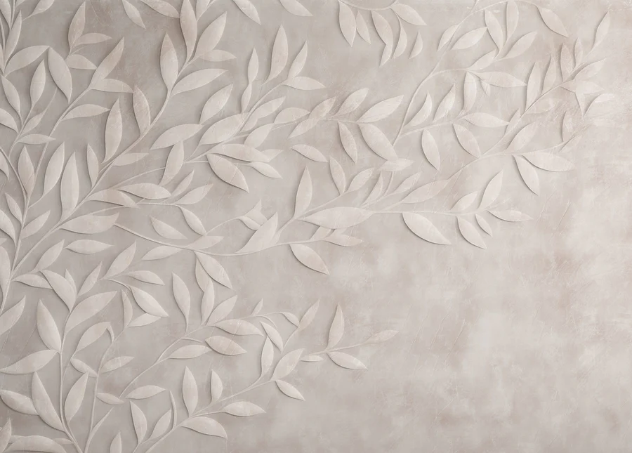 15.51 €9.30 €Fotobehang Witte bladeren op een grijze achtergrond