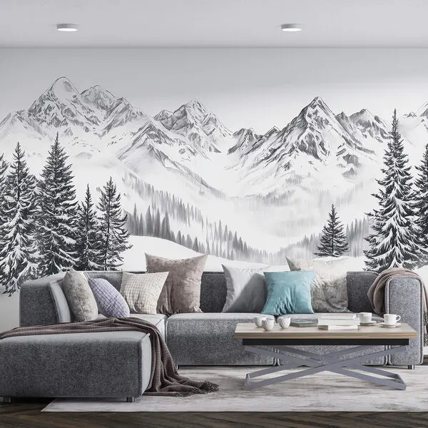 16.31 €9.79 €Fotobehang Tekening van een besneeuwde bergketen