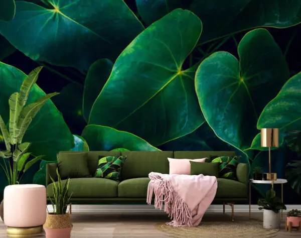 15.51 €9.30 €Fotobehang Weelderige tropische bladeren in elegant patroon