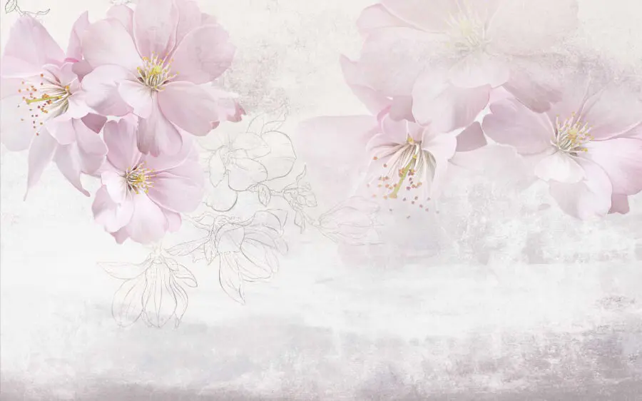 15.51 €9.30 €Fotobehang Roze bloemen op een witte achtergrond