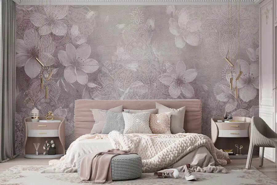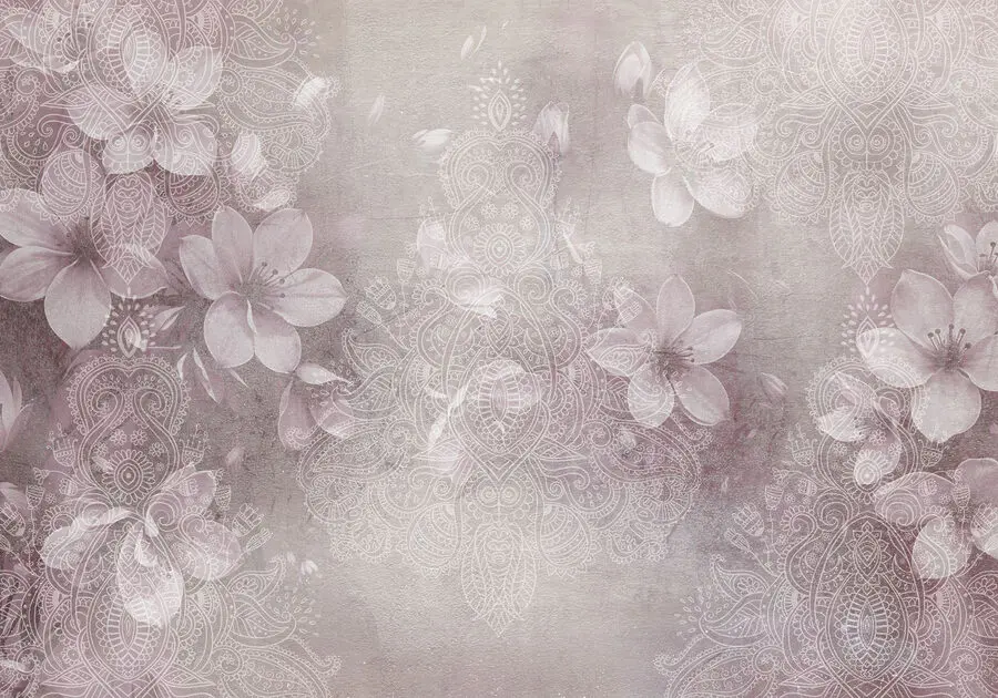 Fotobehang Delicate bloemmotieven in zachte tinten