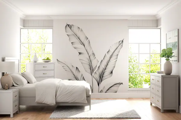 16.31 €9.79 €Fotobehang Witte bladeren op een grijze achtergrond