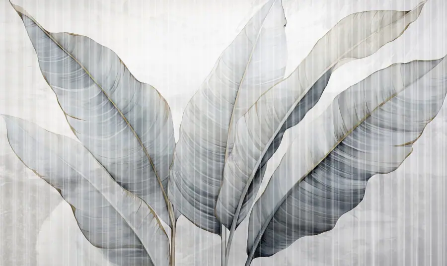 15.51 €9.30 €Fotobehang Witte bladeren op een grijze achtergrond