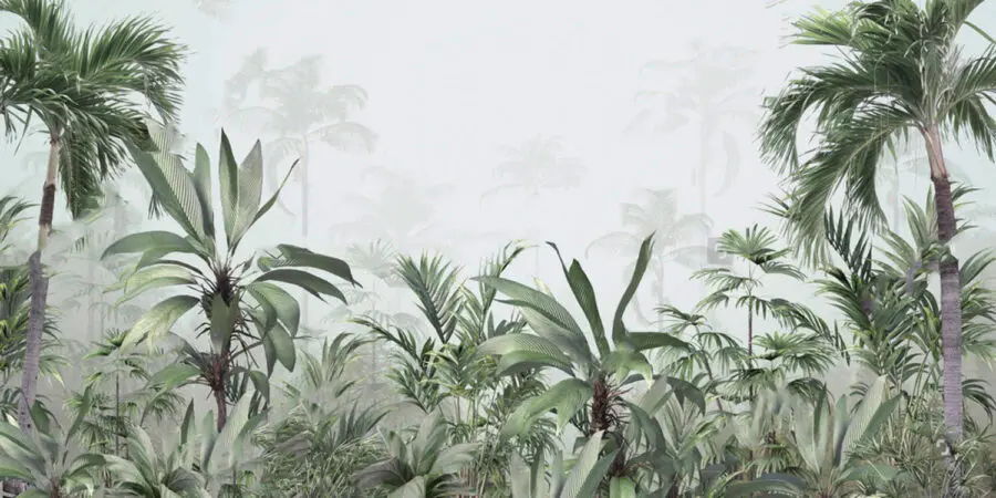 15.51 €9.30 €Fotobehang Groep palmbomen in een mistig bos
