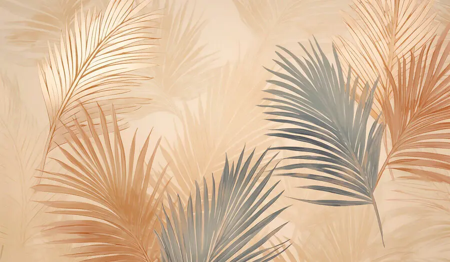15.51 €9.30 €Fotobehang Witte en bruine achtergrond met palmbladeren