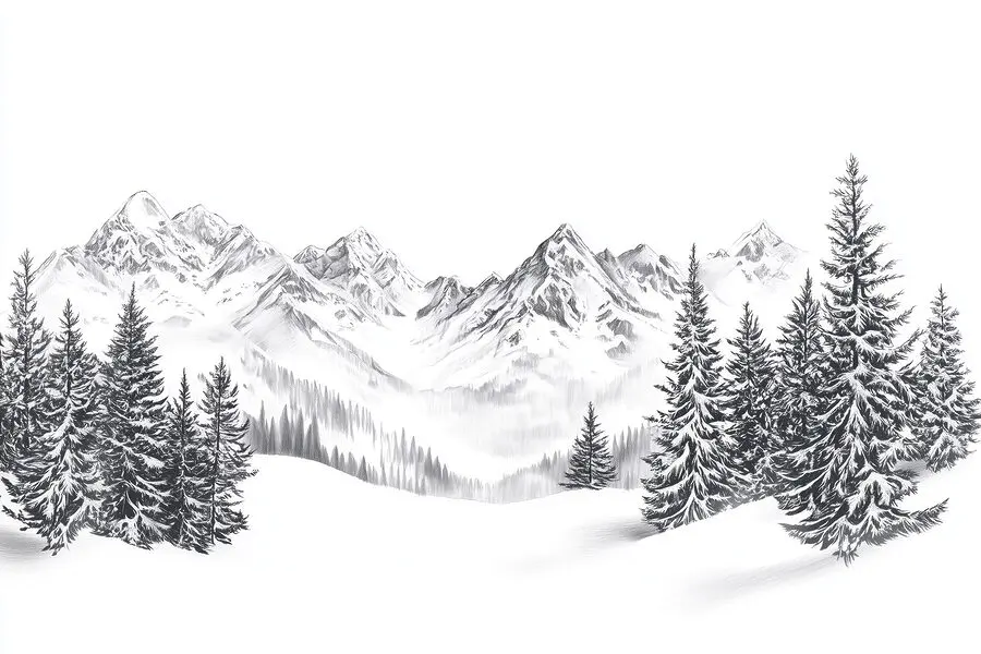 15.51 €9.30 €Fotobehang Besneeuwde berg met bomen en bergen op de achtergrond
