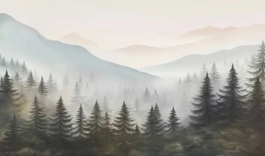 16.08 €8.85 €Fotobehang Landschap van bergen met bomen en mist