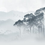 16.31 €9.79 €Fotobehang Aquarel van bomen en vogels vliegend over een mistig bos