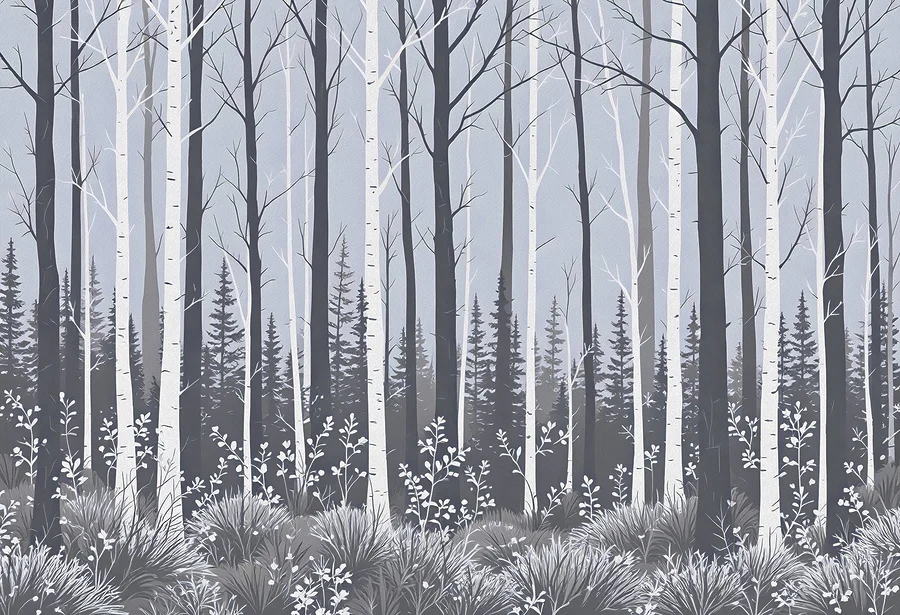 16.08 €8.85 €Fotobehang Groep bomen in een besneeuwd bos