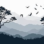 15.51 €9.30 €Fotobehang Vogels vliegen over een bos