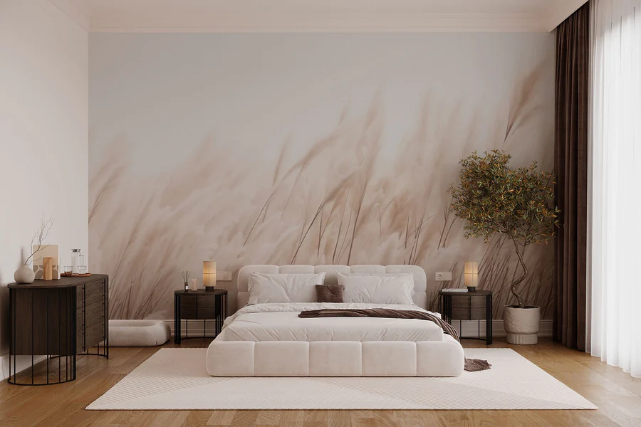 Fotobehang Zachte grassen in zacht zonlicht