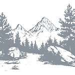 15.51 €9.30 €Fotobehang Aquarel van een bos en bergen