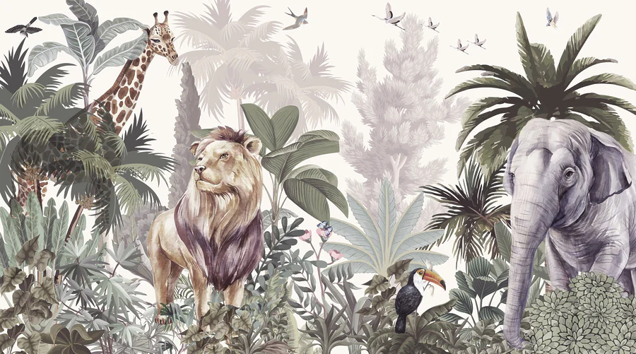 16.31 €9.79 €Fotobehang Muurschildering van dieren in de jungle