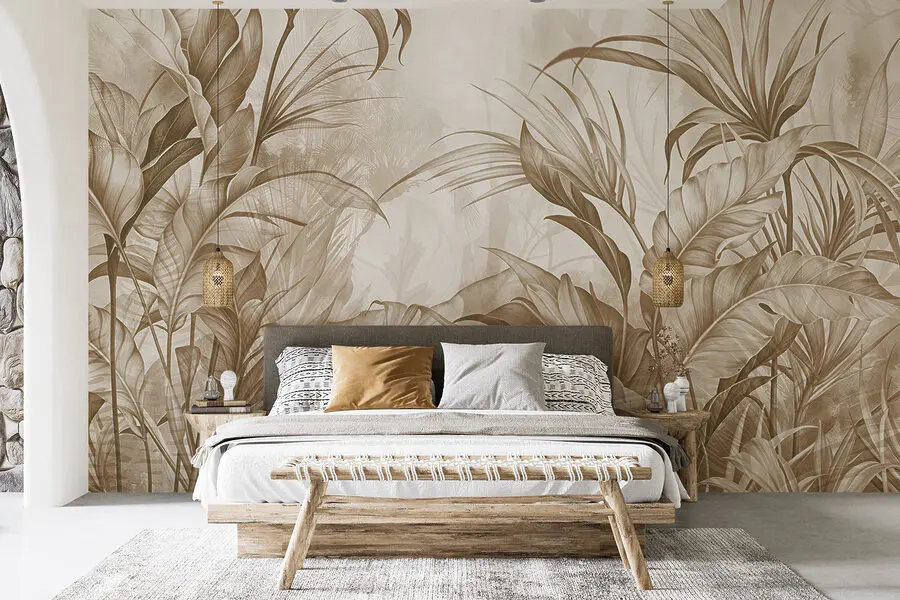 Fotobehang Weelderig gebladerte in aardetinten