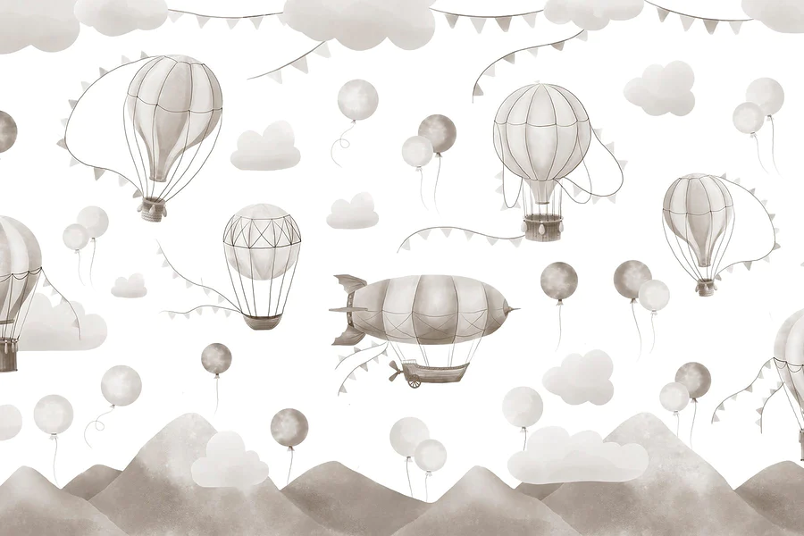 Fotobehang Patroon van heteluchtballonnen en bergen
